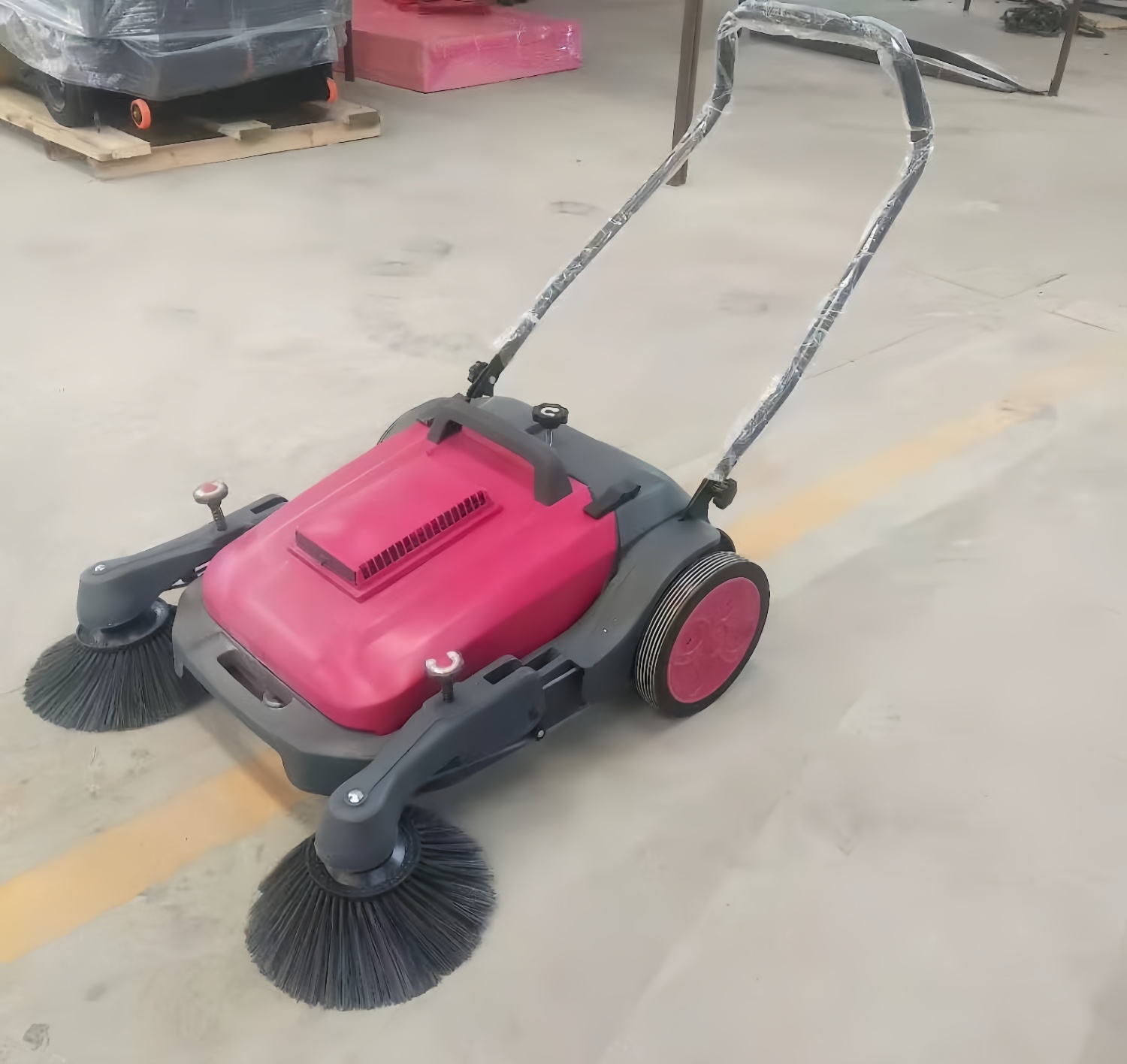 The push-type sweeper relies on human power to drive its three roller brushes to sweep trash into a collection bin. Made entirely of engineering plastic and featuring a foldable handle, it offers flexible and easy operation, safety, low wear, and high efficiency. It is suitable for cleaning large areas such as parks, schools, squares, factories, and workshops. It is particularly well-suited for cleaning plastic playgrounds in schools, encouraging students to engage in the cleaning process.