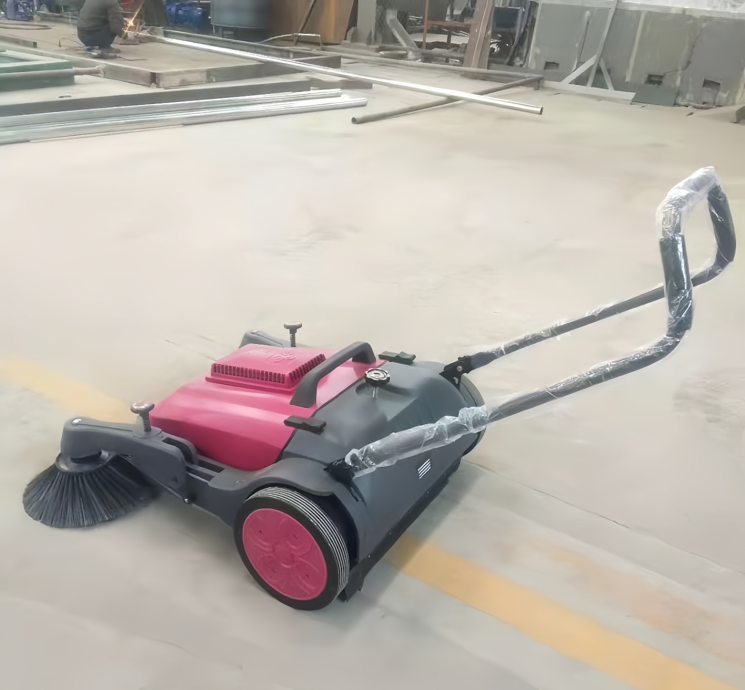 The push-type sweeper relies on human power to drive its three roller brushes to sweep trash into a collection bin. Made entirely of engineering plastic and featuring a foldable handle, it offers flexible and easy operation, safety, low wear, and high efficiency. It is suitable for cleaning large areas such as parks, schools, squares, factories, and workshops. It is particularly well-suited for cleaning plastic playgrounds in schools, encouraging students to engage in the cleaning process.
